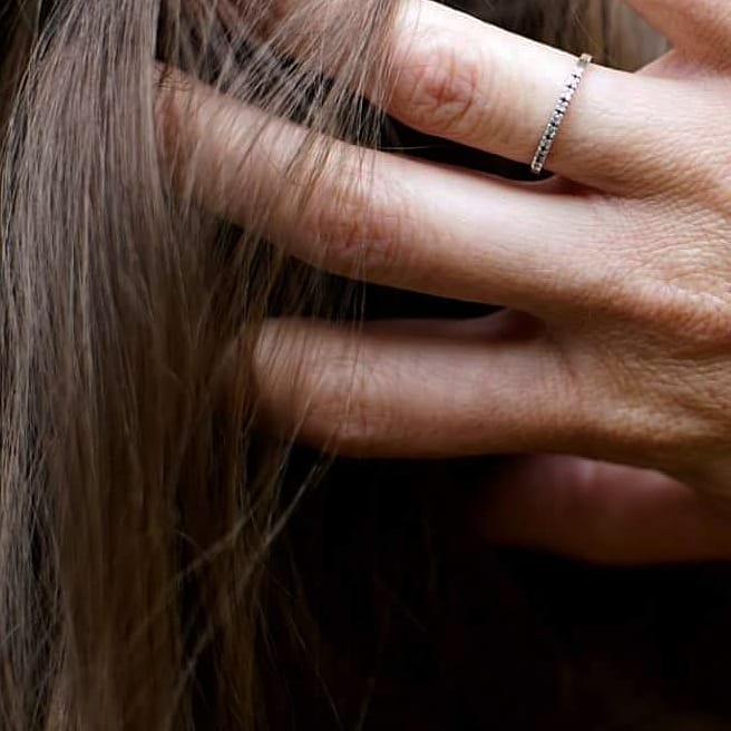 An elegant silverring with 9 tiny Diamonds, 1.10 mm in diameter.
