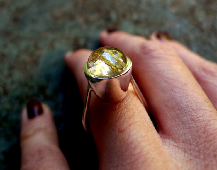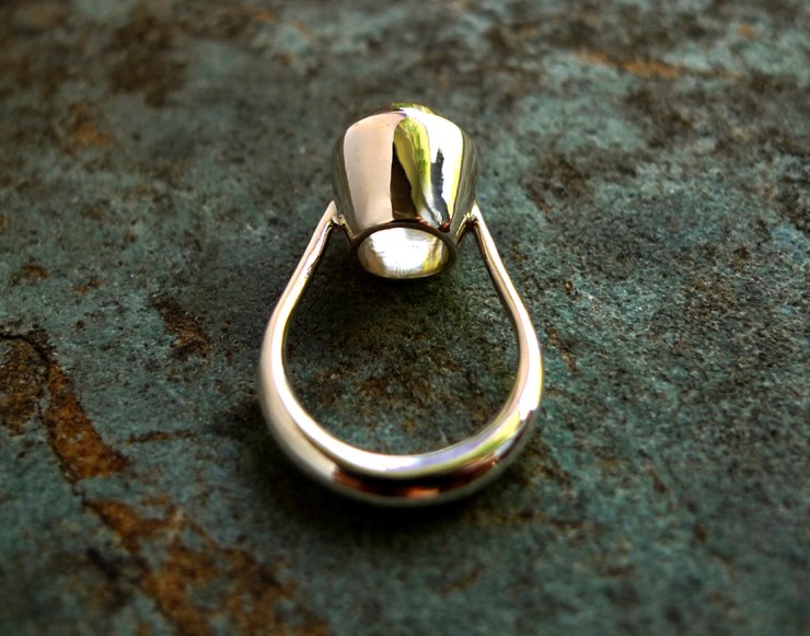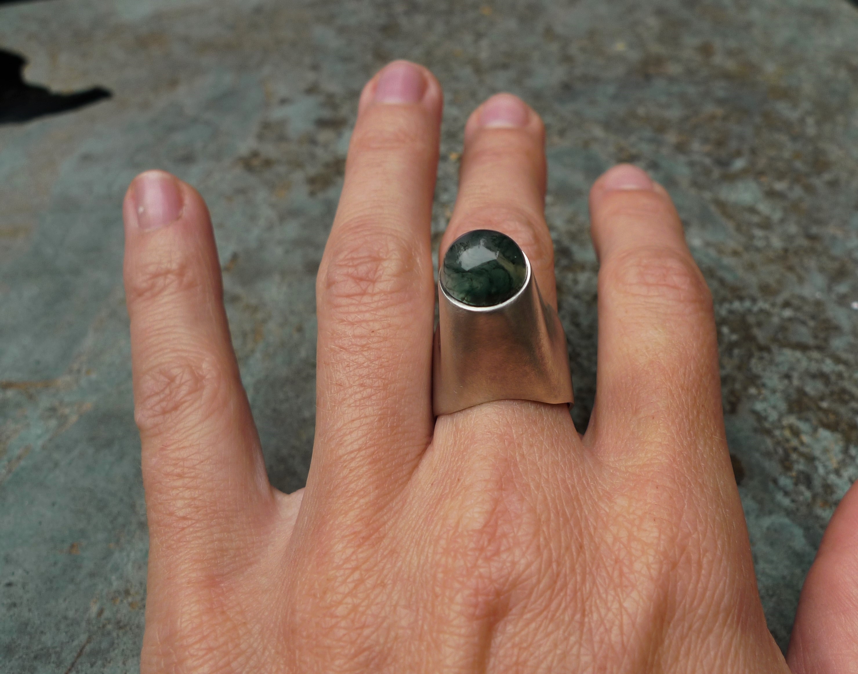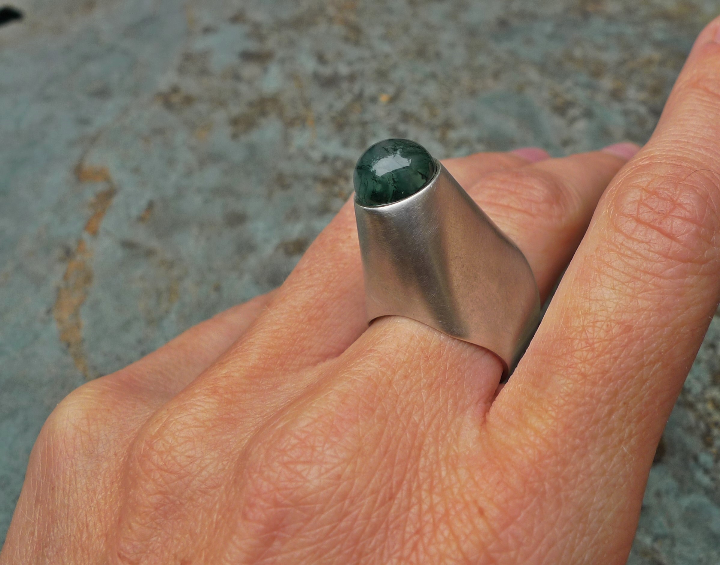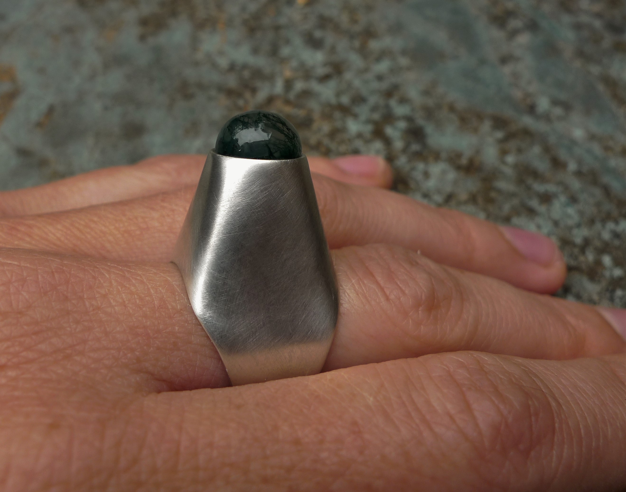 A beautiful silverring with a smooth 70-cut rosenquartz.