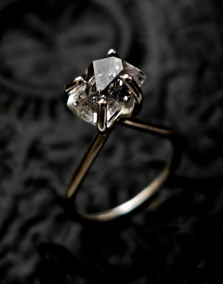 Silverring with a beautiful herkimer quartz that shimmers like a diamond.